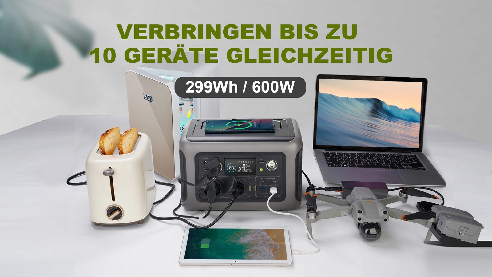 Regulärer Preis €368,00 Verkaufspreis €368,00 Regulärer PreisALLPOWERS R600 Tragbare Powerstation | 600W 299Wh